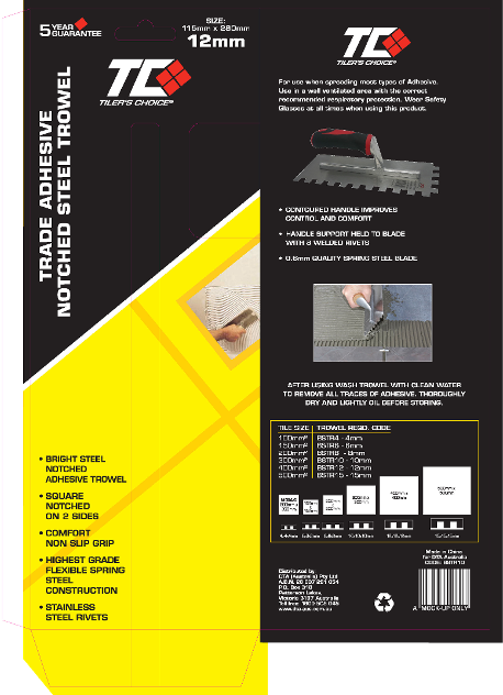 DTA - Tiler's Choice Trowel Tool Packaging
